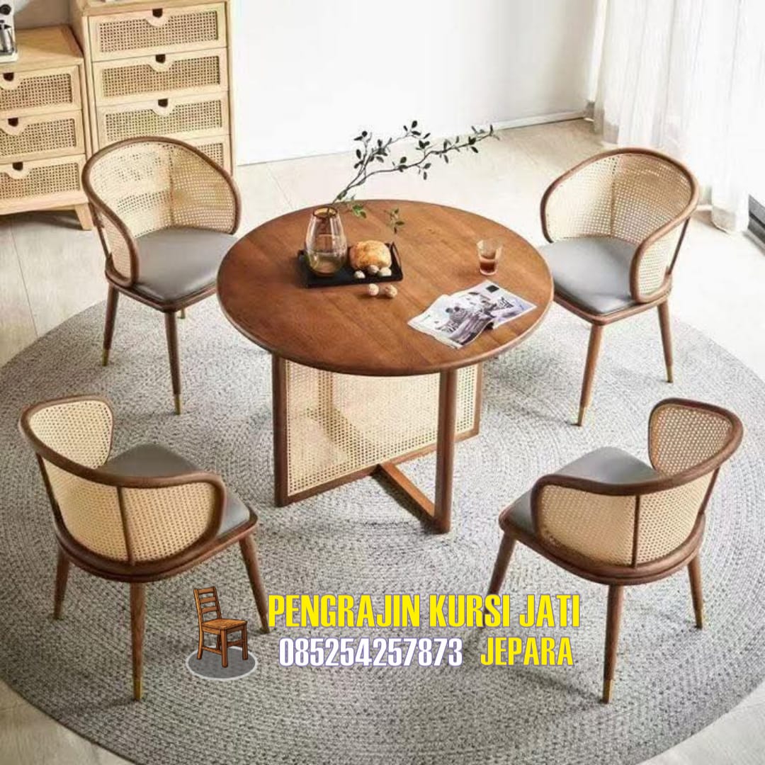 Kursi meja makan jati modern dengan finishing natural memperlihatkan corak kayu alami yang sangat elegan, indah dan nyaman dipandang, menjadikan tempat makan anda dengan pasangan dan keluarga anda sangat nyaman.