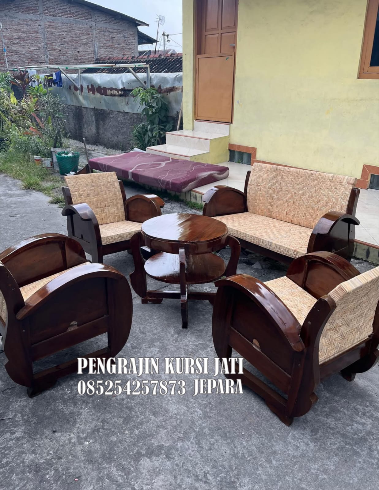 Set Kursi Tamu Kayu Jati Anyaman – Klasik, Kokoh, dan Nyaman