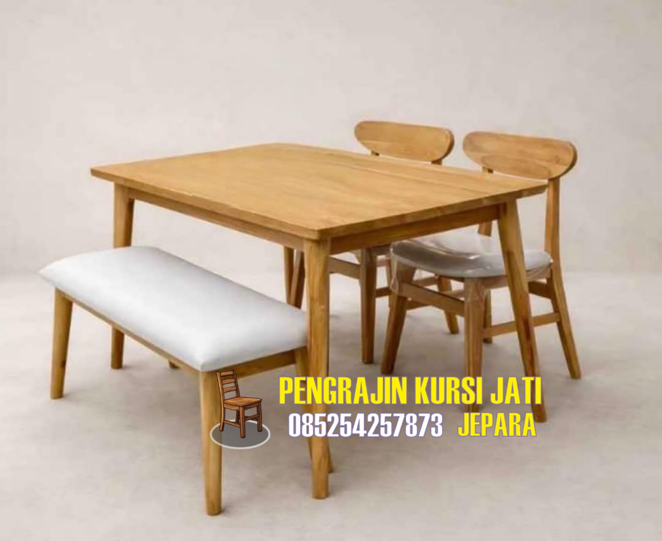 Dari sisi penempatan, set meja makan kayu jati ini sangat fleksibel. Cocok untuk ruang makan rumah, apartemen, hingga hunian bergaya Scandinavian atau Japandi. Desainnya yang minimalis memudahkan Anda memadukannya dengan berbagai dekorasi interior. Selain untuk kebutuhan rumah tangga, produk ini juga ideal digunakan sebagai meja makan kayu untuk kafe, homestay, atau penginapan yang mengutamakan kesan natural dan nyaman.